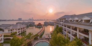 The hotel is built on the water of West Lake, with villas and rooms connected by wooden walkways. This is an ideal place to watch the sunrise and sunset. The quiet space and 5-star service make this place a favorite choice for international tourists.