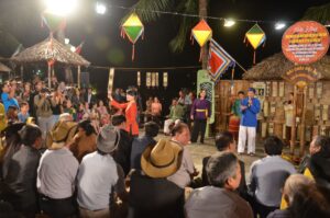 Within the framework of the Hoi An Lantern Festival, visitors have the opportunity to enjoy many types of unique traditional art performances. One of the outstanding activities is Bài Chòi singing, a folk art form combining music, poetry, and acting, recognized by UNESCO as an intangible cultural heritage. Bài Chòi performances often take place along the streets, attracting enthusiastic participation from both locals and tourists.