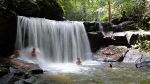 Tourists experience bathing in Suoi Tranh Phu Quoc. (Source: internet)