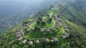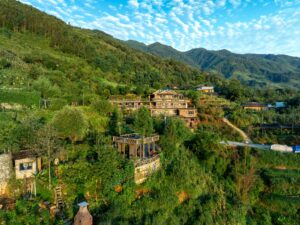 Laxsik Ecolodge Sapa Hotel is located in Ly village, Lao Chai village, leaning against the mountain, overlooking the beautiful Muong Hoa valley. Surrounded by terraced fields that change color with the seasons, creating a unique natural scene every time you visit. This 4-star resort includes many bungalows stylized from brick, stone, and wood, inspired by H’Mong architecture, bringing a peaceful space close to nature.